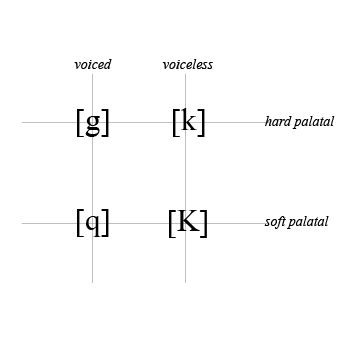 - This voiced sound [g] pairs with its voiceless [k] (hard palatal):